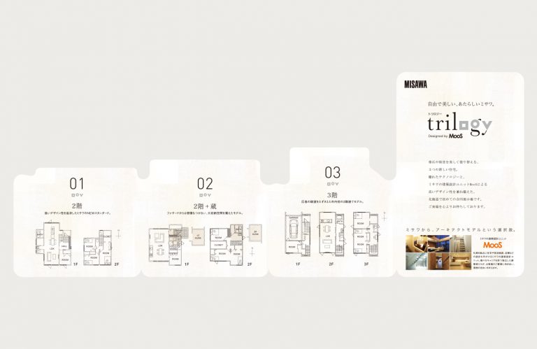 ミサワホーム北海道 帯広支店 住宅展示場トリロジー GRAPHIC LOGO account executive/久慈茂樹 planner/鹿野泰央 copywriter/鹿野泰央 designer/前川良二